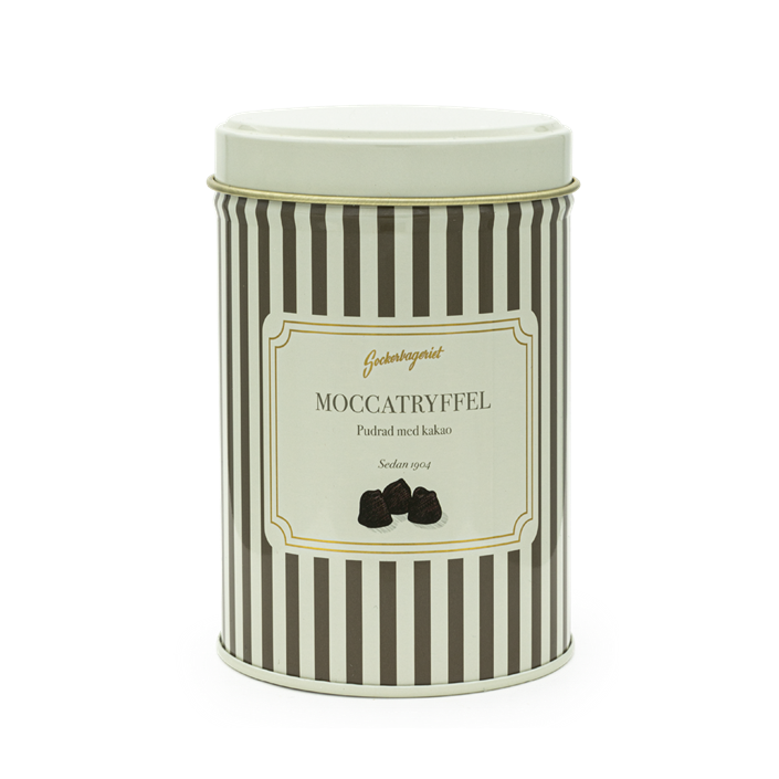 Moccatryffel av högsta kvalitet i vacker plåtburk