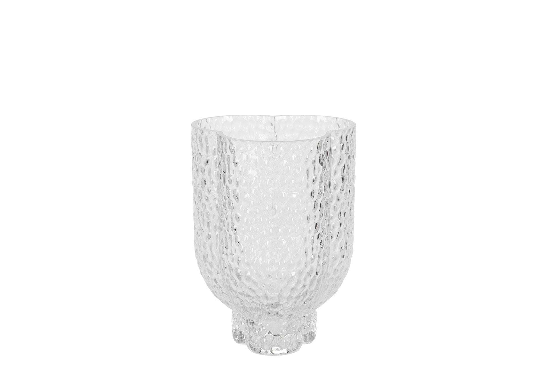 Vacker glasvas på fot med hamrat glas.